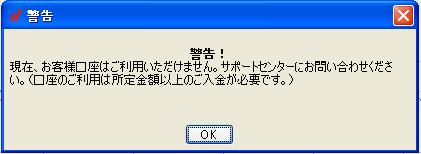 警告 お客様の口座はご利用いただけません。云々かんぬん。