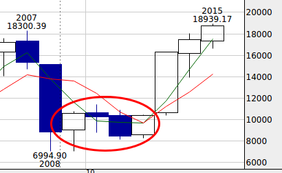 当時は前年にリーマンショックがあり、そこから4年後のアベノミクスまで日経平均が2000円の範囲をウロウロするといった相場環境でした。