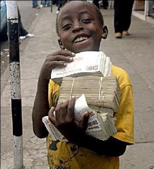札束を持って微笑む少年。パンを買いにいくのでしょうか?