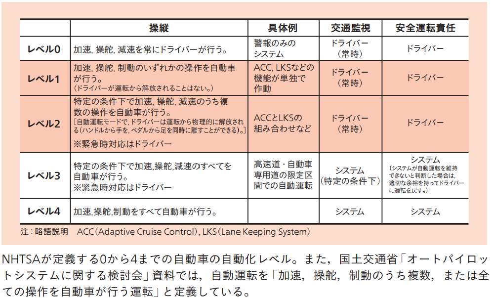 ・自動車の自動化レベルについて