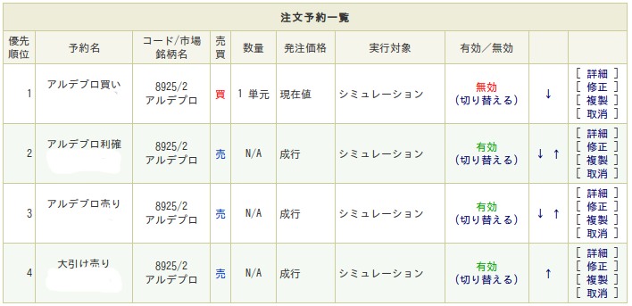 ですがこのように一覧の流れを入れておいていただくと、株をまだ持っていないときには返済の注文予約は無視され、持った時からシステムの中で条件を考慮されるようになります。