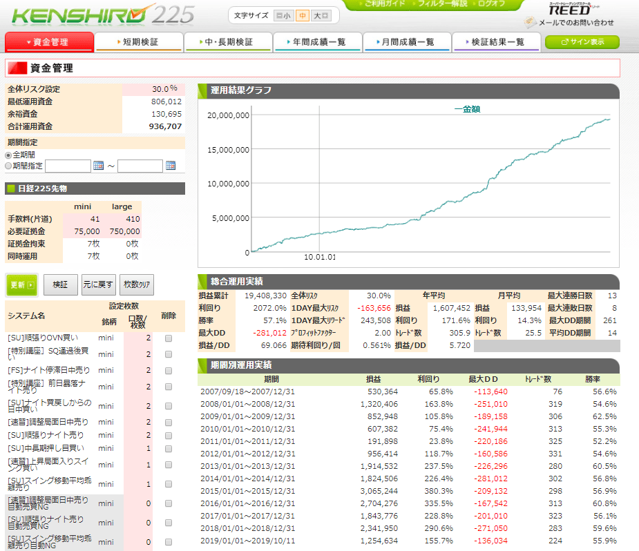 実績10年超、日経225先物ミニのシステムトレードツールKENSHIRO-225 連動システム