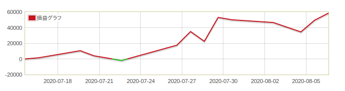 7月17日から8月7日までの3週間で日経225ミニ1枚の取引で58,500円の利益です。
