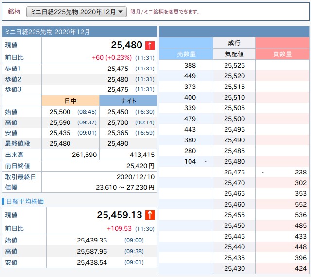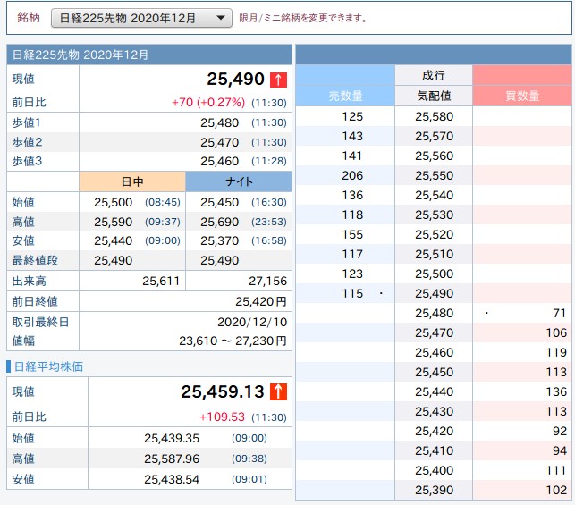 以下は2020年11月12日の11:30の時点の注文の板です。