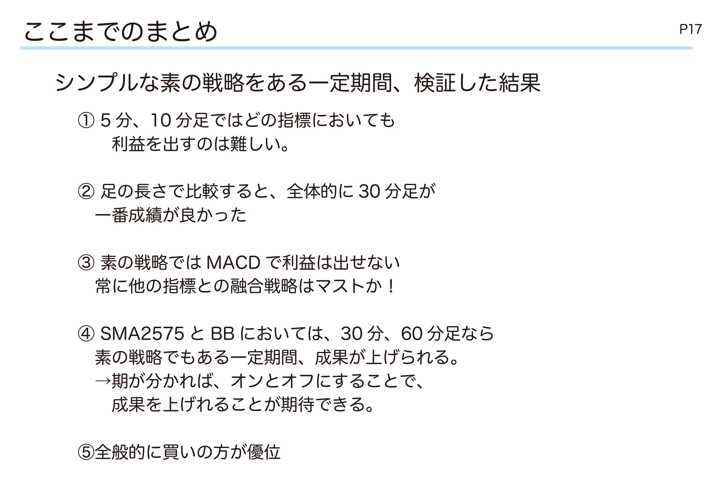 あくまでテクニカル指標を一つずつに絞って実験した結果ですが